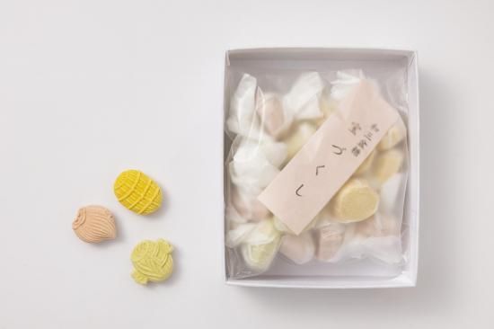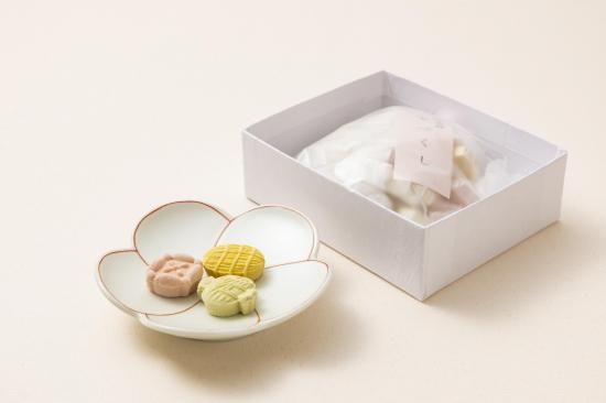和三盆糖で作った打ち物で、俵や小槌をモチーフにした形の干菓子です。